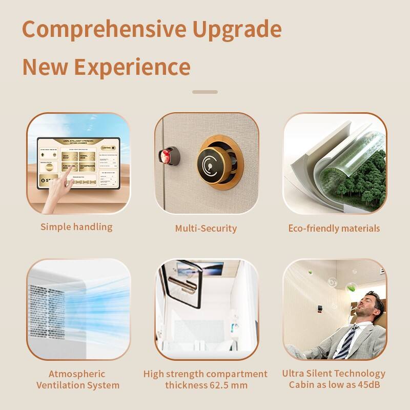 Safety Over-Engineering gurrantee: 150% safety redundancy design, 8 layers of safety guarantee, manual relief valve, 3 times more fully automatic safety valve, vector ventilation system, EO-level environmentally friendly interior materials, real-time data monitoring system, exceeding industry standards for reliable quality. This extensive over-engineering is our tangible promise of absolute safety, providing you with complete and unwavering peace of mind during every session.